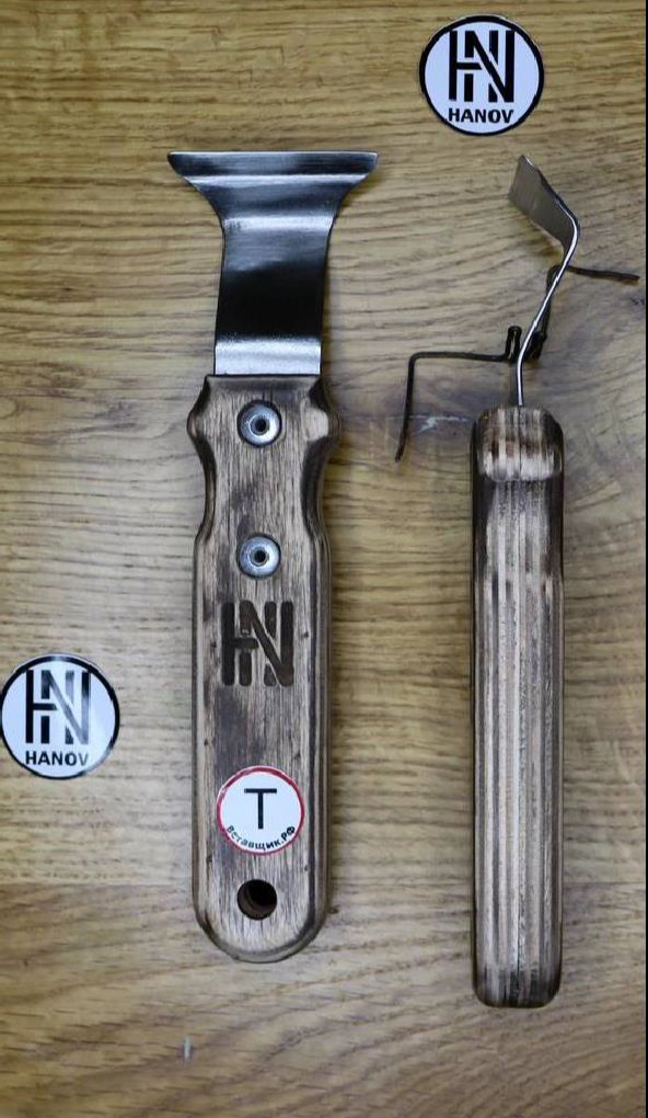 Шпатель Тыкач для работы с парящими профилями и ЕврокрААб, формой усов позволяет заправить гарпун в самый угол, имеет проточку для минимальной толщины лезвия.