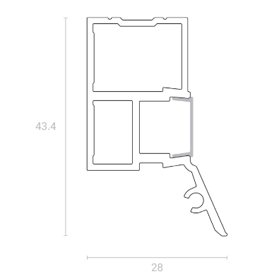 Опорный потолочный профиль, монтируемый в каркас потолка, служащий основанием для карнизных профилей UMBRA различной ширины (115 мм и 140 мм), а также для расширителя UMBRA, которые обеспечивают связь со стеной с помощью базового профиля UMBRA через подвижный полимерный элемент.