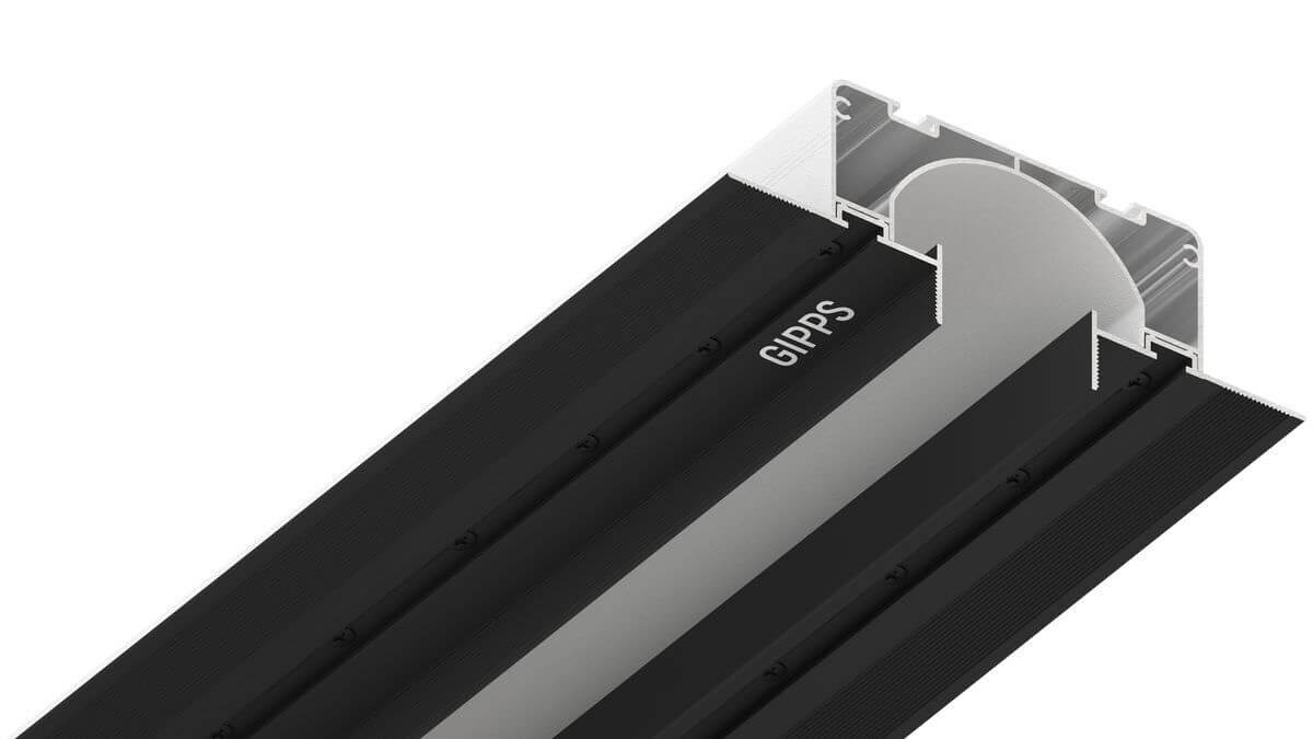Чёрный GIPPS 35 – конструкционный профиль, используется в качестве чёрной ниши для монтажа точечных светильников, спотов или карнизов.