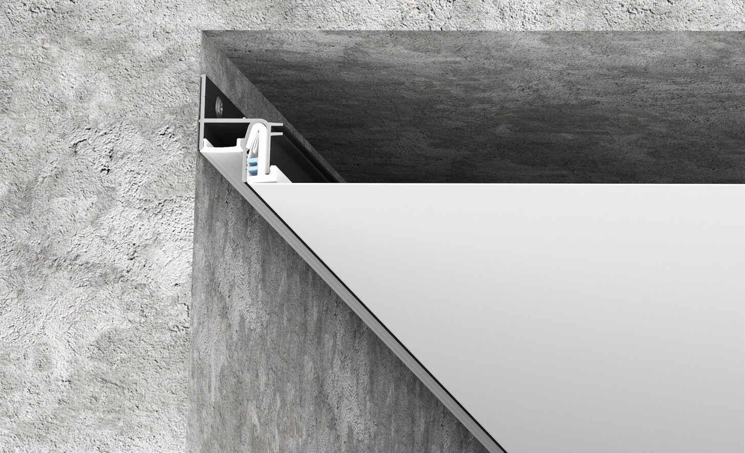 Данная система Clamp Supra состоит из алюминиевого профиля и двухкомпонентного демпфера Clamp. Такое техническое решение позволяет надежно фиксировать полотно, предотвращая его нежелательное выскакивания из профиля.