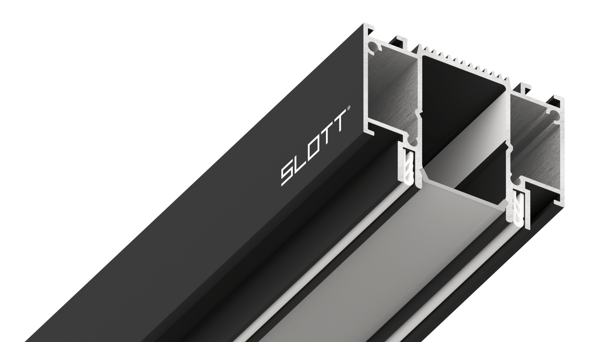 Важной составляющей и интересным решением профиля SLOTT CANYON является жесткий поликарбонатный рассеиватель, который может быть утоплен в профиль или расположен у самого края. Данное решение позволяет сделать видимую часть конструкции более объемной, интересной, а также спрятать стыки в углах поликарбонатного рассеивателя. Ширина световой линии CANYON соответствует магнитной трек-системе SLOTT for TECHNOLIGHT.