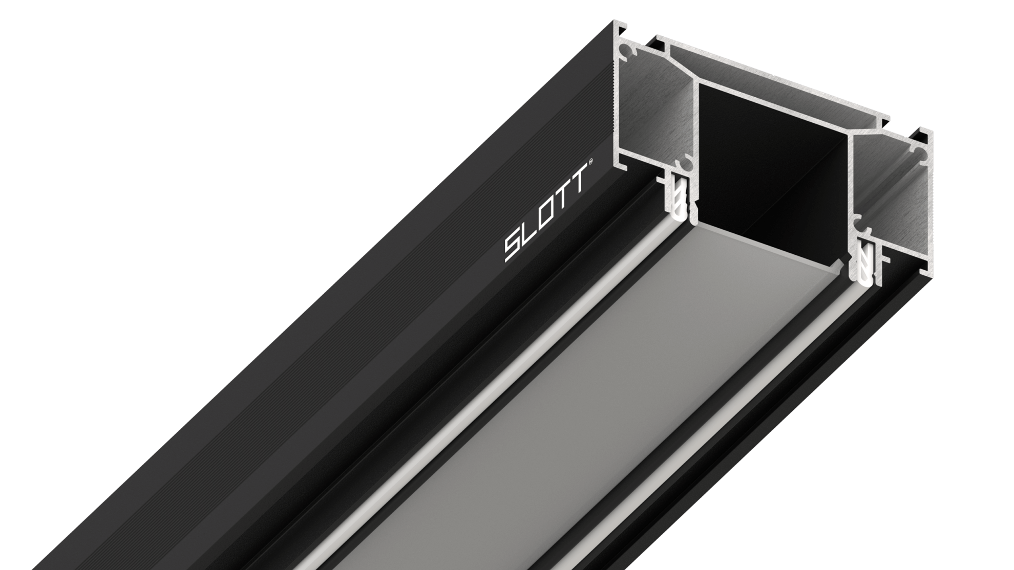 Важной составляющей в конструкции SLOTT Line является жесткий поликарбонатный рассеиватель, который утоплен на 3мм в профиль. Данное решение позволяет сделать видимую часть конструкции более объемной, интересной, а также спрятать стыки в углах поликарбонатного рассеивателя. Небольшая высота профиля не повлечет за собой потери в высоте при установке натяжного потолка. Профиль выполнен в двух цветах: черный и белый, чтобы разнообразить цветовую гамму видимой части. Рассеиватель выполнен в белом цвете. Световые линии SLOTT Line предусмотрены для установки в качестве основного источника света, поэтому важно расположить их так, чтобы освещение распространялось равномерно на всю площадь помещения. Данные системы лаконично вписываются в интерьеры, выполненные в современном минималистичном стиле.