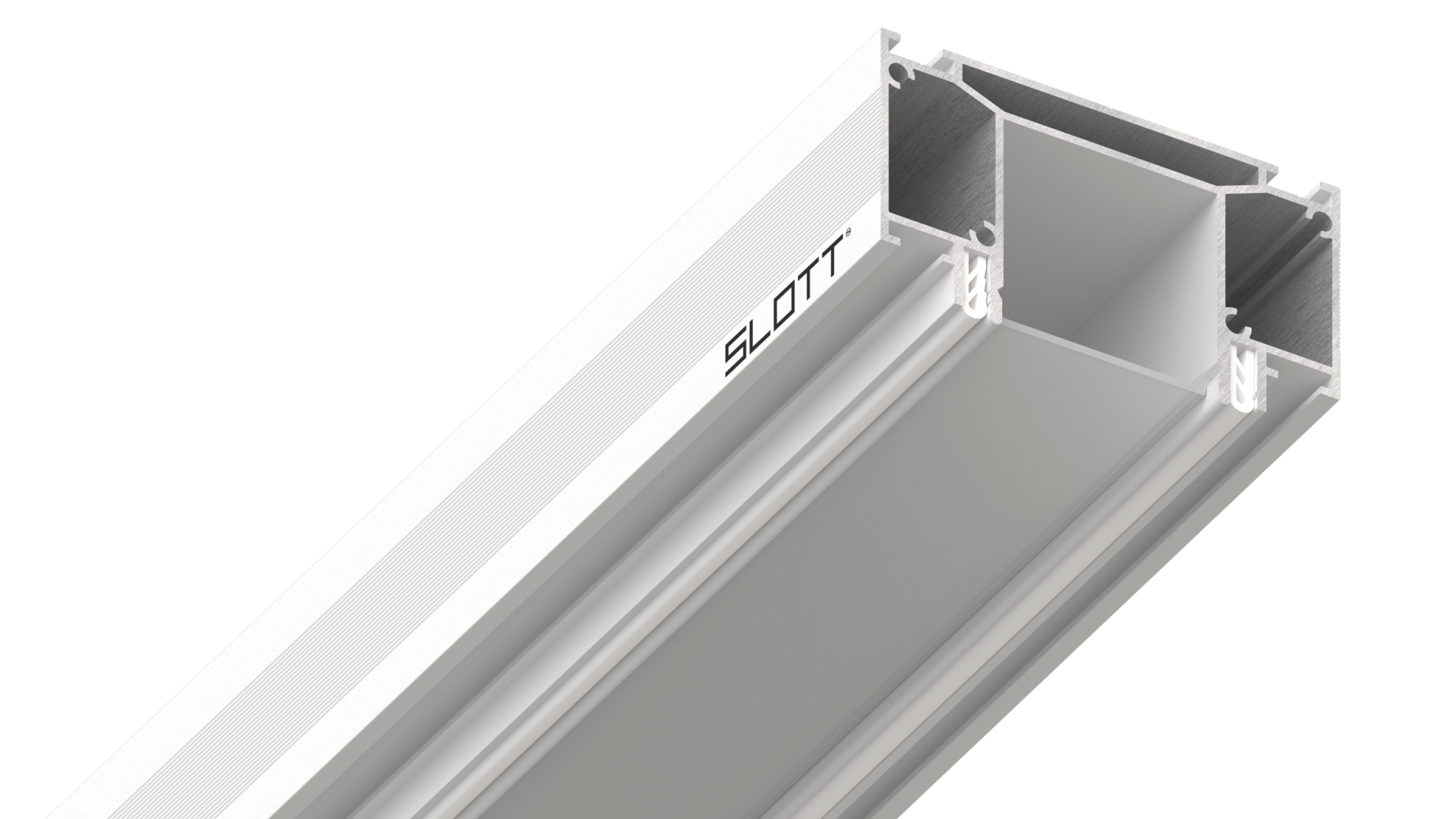 Важной составляющей в конструкции SLOTT Line является жесткий поликарбонатный рассеиватель, который утоплен на 3мм в профиль. Данное решение позволяет сделать видимую часть конструкции более объемной, интересной, а также спрятать стыки в углах поликарбонатного рассеивателя. Небольшая высота профиля не повлечет за собой потери в высоте при установке натяжного потолка. Профиль выполнен в двух цветах: черный и белый, чтобы разнообразить цветовую гамму видимой части. Рассеиватель выполнен в белом цвете. Световые линии SLOTT Line предусмотрены для установки в качестве основного источника света, поэтому важно расположить их так, чтобы освещение распространялось равномерно на всю площадь помещения. Данные системы лаконично вписываются в интерьеры, выполненные в современном минималистичном стиле.
