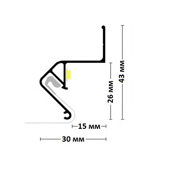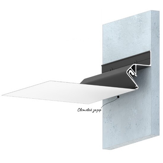 Стеновой парящий профиль Flexy FLY 01 для натяжных потолков с гарпунной системой крепления полотна. С полкой для светодиодной ленты. Без светорассеивающей вставки.