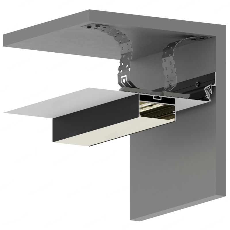 Универсальный профиль для изготовления накладных и встраиваемых световых линий и светильников.