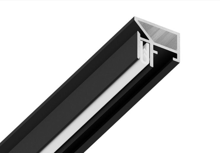 Компактный многофункциональный конструкционный профиль, который имеет множество вариантов использования, в том числе, монтажа прямоугольных, квадратных ниш, а также для встраивания сложных светильников и конструкций, обхода щелевых диффузоров и вентиляционных решеток. Этот продукт призван упростить работу с ПВХ и тканевыми полотнами. Монтаж без использования клея, а также без подрезки.