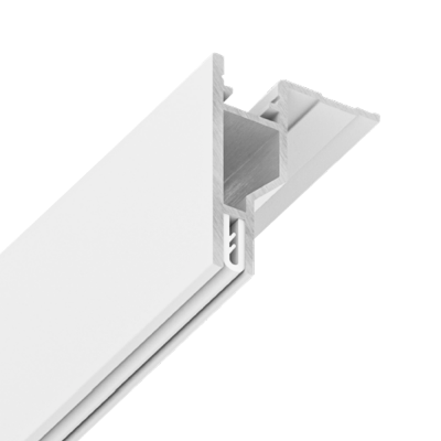 Что нового? Гарпун был удален и заменен светодиодной лентой с рассеивателем, предназначенной для создания декоративного освещения. Эта подсветка может быть установлена как горизонтально, так и вертикально. Благодаря демпферному узлу можно использовать как ПВХ, так и тканевые потолки.