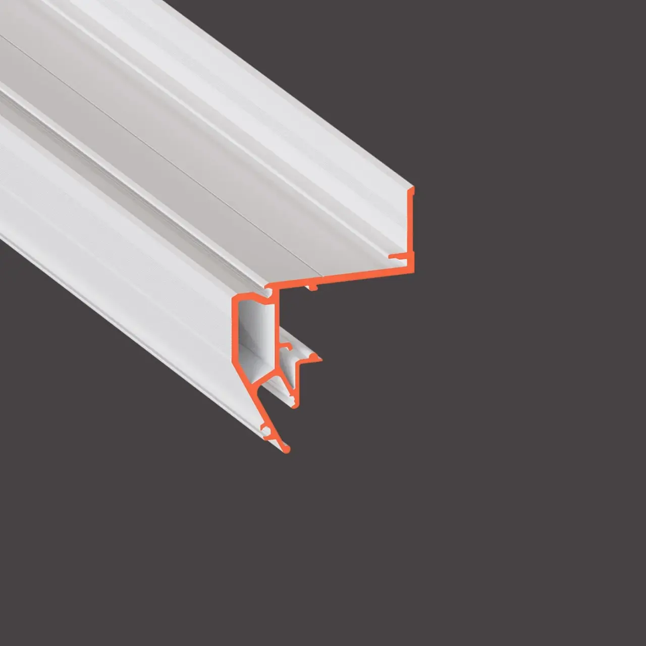 Конструкционный парящий профиль для натяжных потолков с гарпунной системой крепления полотна. С пазом для светодиодной ленты и креплением для экрана.