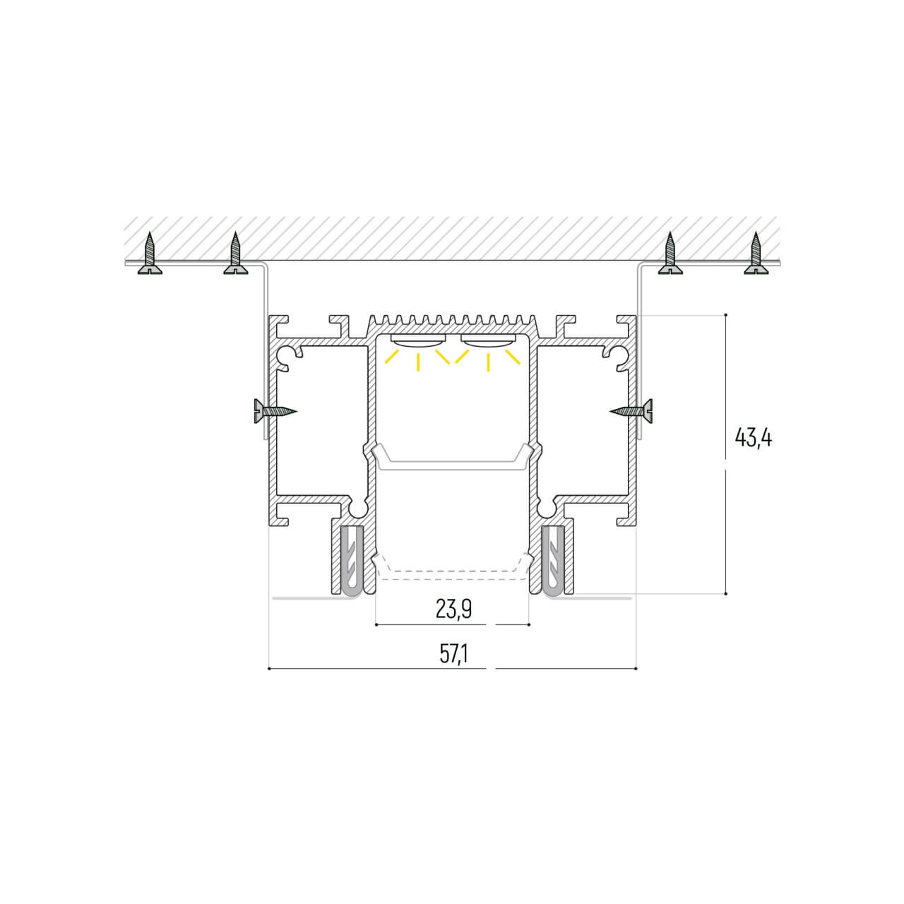 Важной составляющей и интересным решением профиля SLOTT CANYON является жесткий поликарбонатный рассеиватель, который может быть утоплен в профиль или расположен у самого края. Данное решение позволяет сделать видимую часть конструкции более объемной, интересной, а также спрятать стыки в углах поликарбонатного рассеивателя. Ширина световой линии CANYON соответствует магнитной трек-системе SLOTT for TECHNOLIGHT.