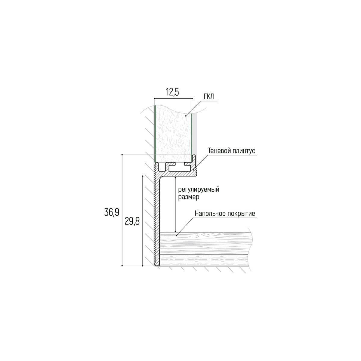 Теневой плинтус с уголком 11,3*7 мм KRAAB GIPPS