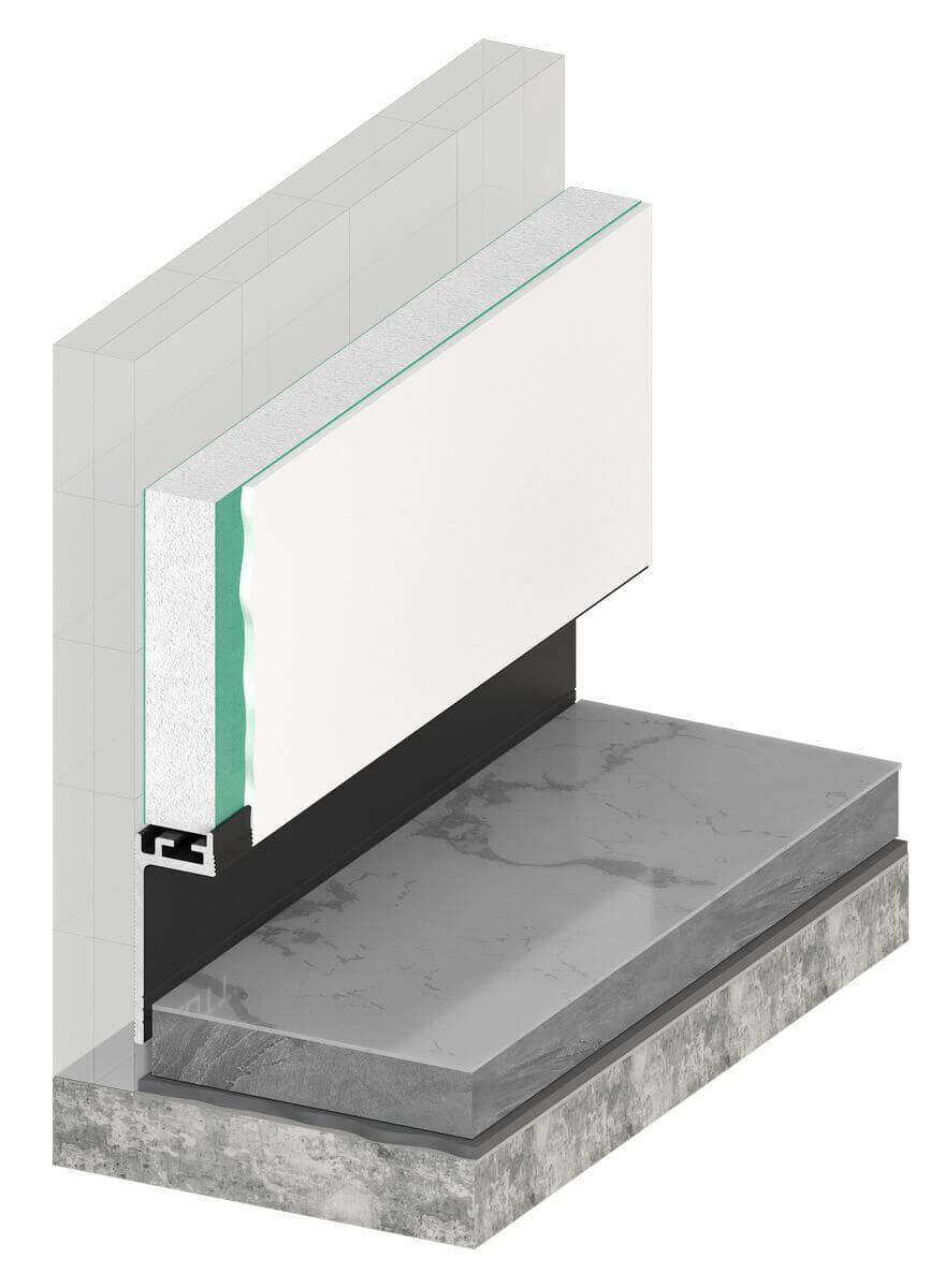 Технология теневого плинтуса KRAAB GIPPS предотвращает появление линейных расширений, формирует ровный зазор и идеальное теневое примыкание. Металлический внешний угол предотвращает различные сколы и деформации стены или штукатурки.