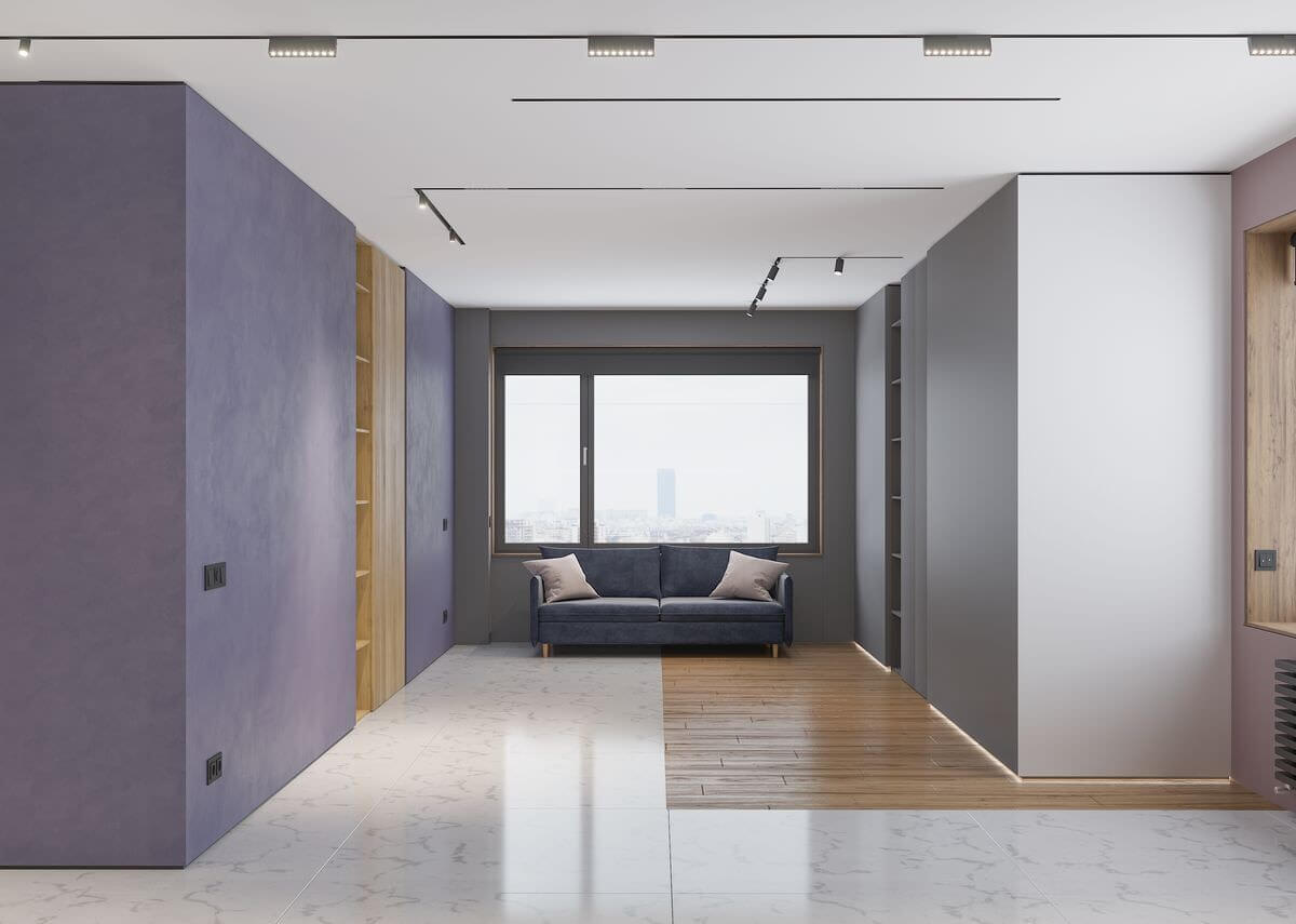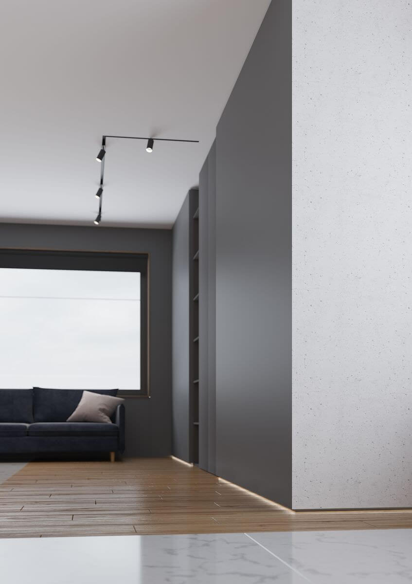 Теневой плинтус создаёт возможность гармоничного сопряжения цветов пола и стен, сглаживает момент стыка, даже если имеются какие-то неровности. Среди преимуществ такого решения отсутствие монтируемого плинтуса, который обычно создает неудобство при расстановке мебели, не давая ей вплотную прилегать к стене.