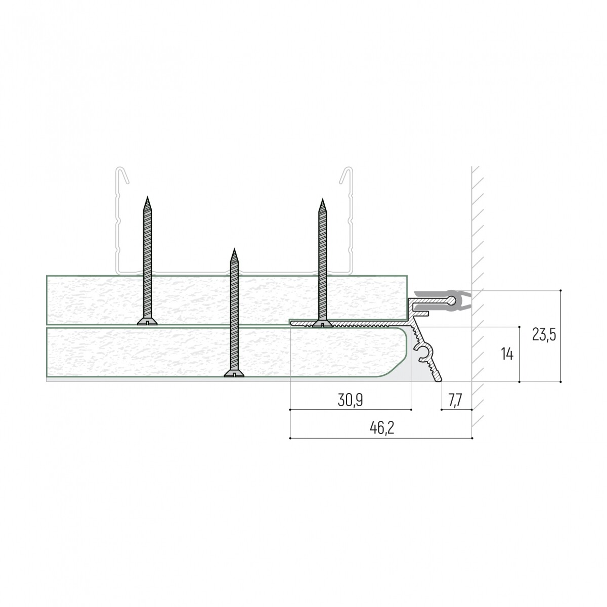 Теневой профиль с демпфером Gipps 3-12 расcчитан на толщину гипсокартонного листа 12 и 15 мм соответственно.