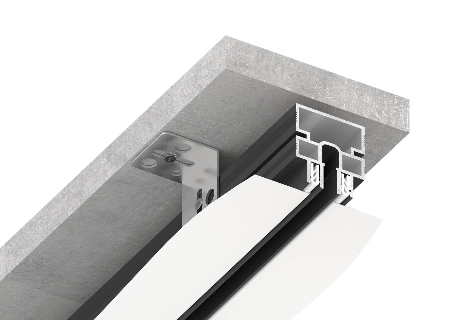 Встроенный паз для гарпунной системы служит для временной фиксации полотна, для простоты установки ПВХ-потолков.