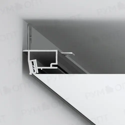 Главное назначение теневого профиля — создание ровного, эстетичного разрыва плоскости потолка и стены. Такое техническое решение создает визуальный эффект потолка, не прикрепленного к стене, и скрывает все мелкие неровности. Особенно актуален этот прием при наличии рельефной поверхности стены.